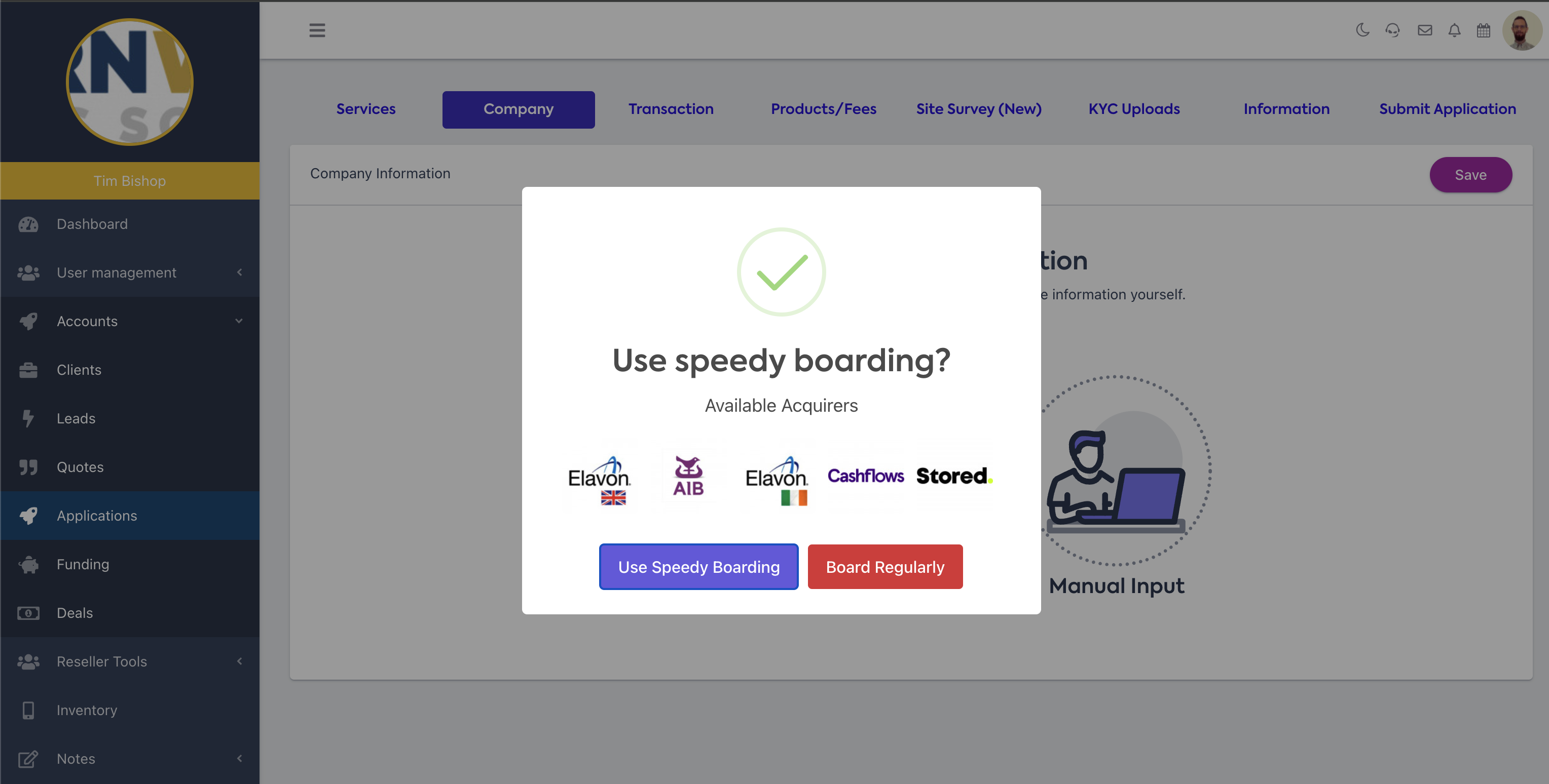 Select the boarding type you wish to use, and you'll see the corresponding Acquirers.