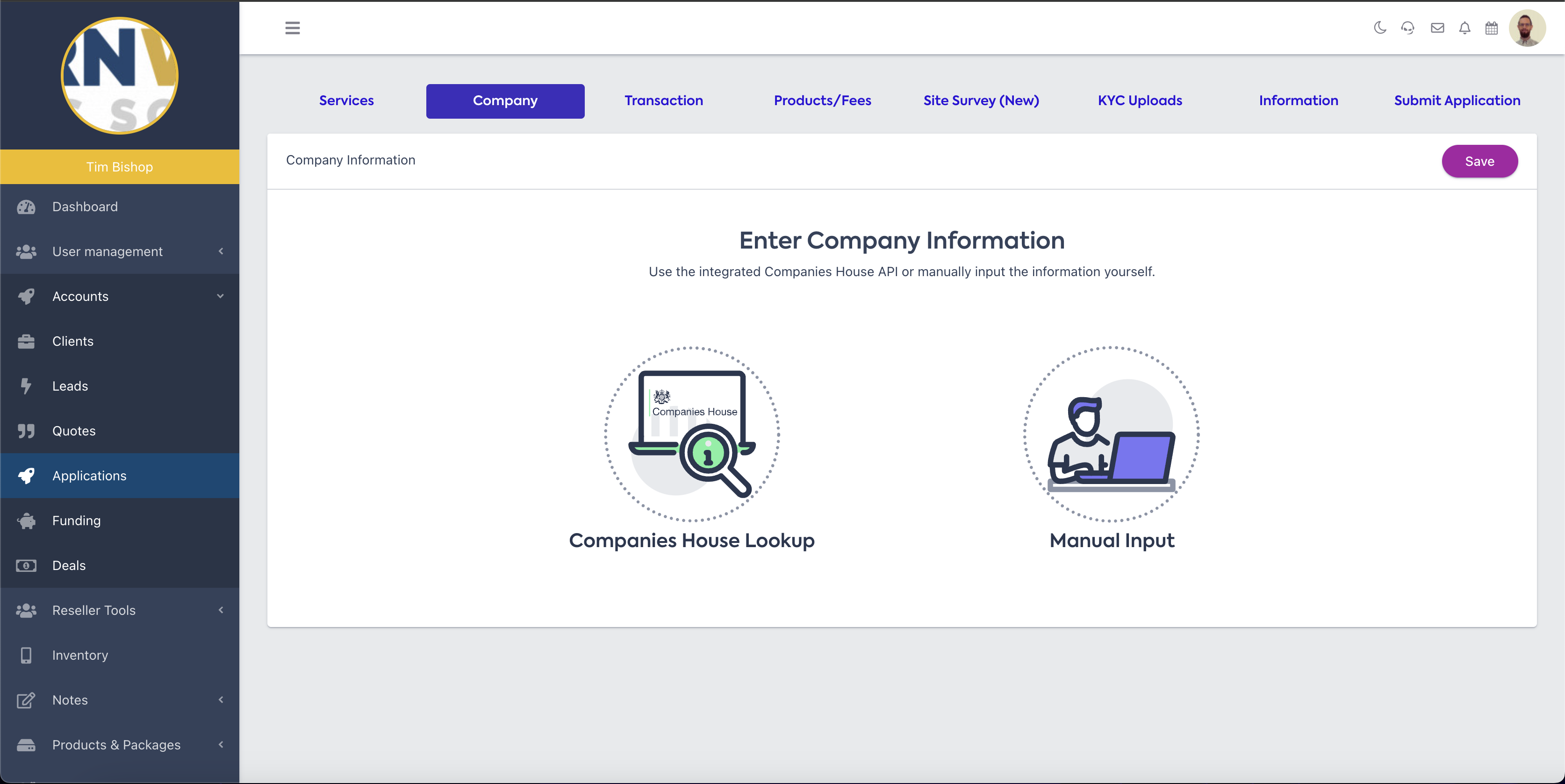 You can input this information manually, or select 'Companies House Lookup' to pre-fill some of the information from there directly.