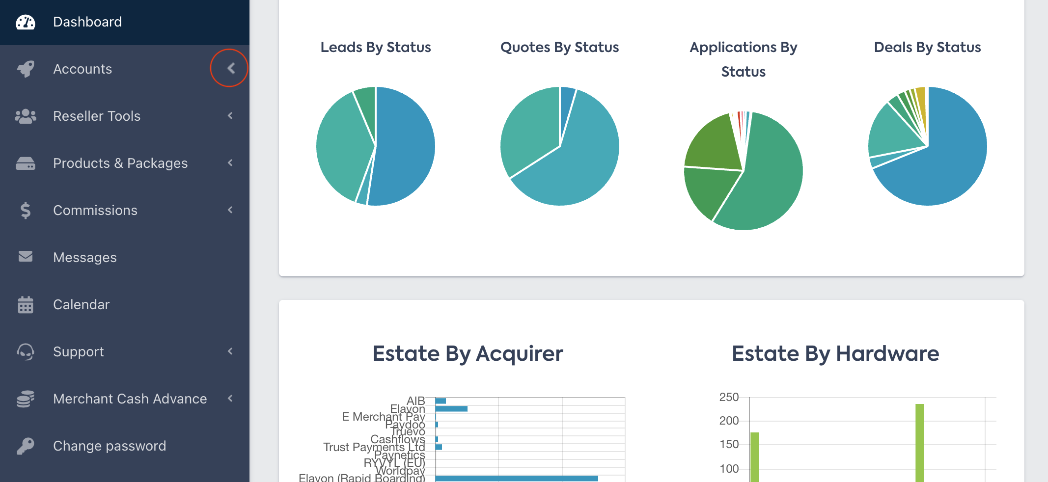 The Menu Running down the left-hand side is the navigation menu. The left facing ‘<’ icon next to an option indicates a dropdown submenu is available..Click any option with the ‘<’ icon to reveal the dropdown submenu. The Menu test